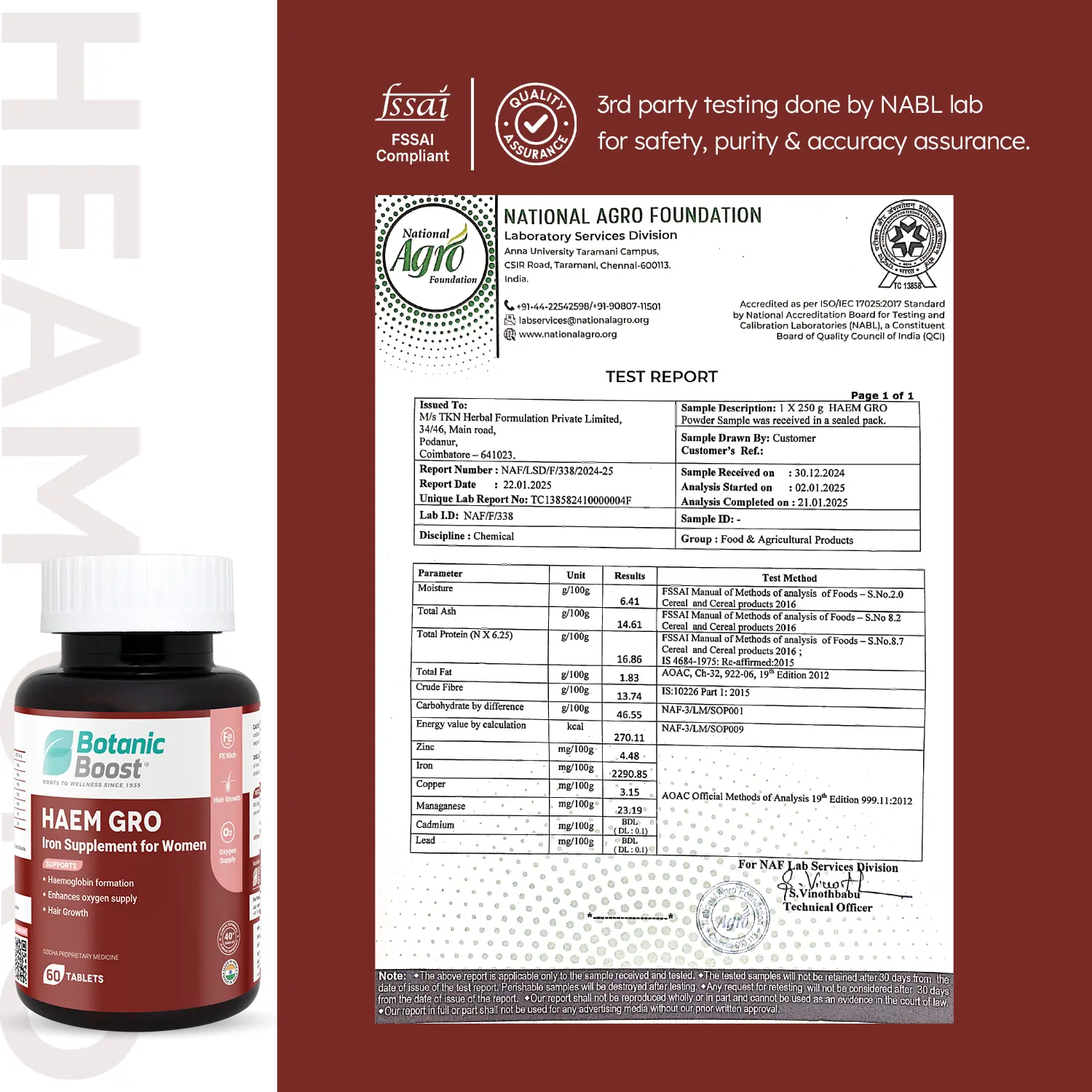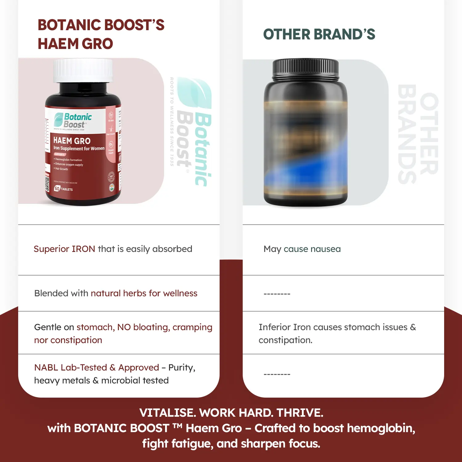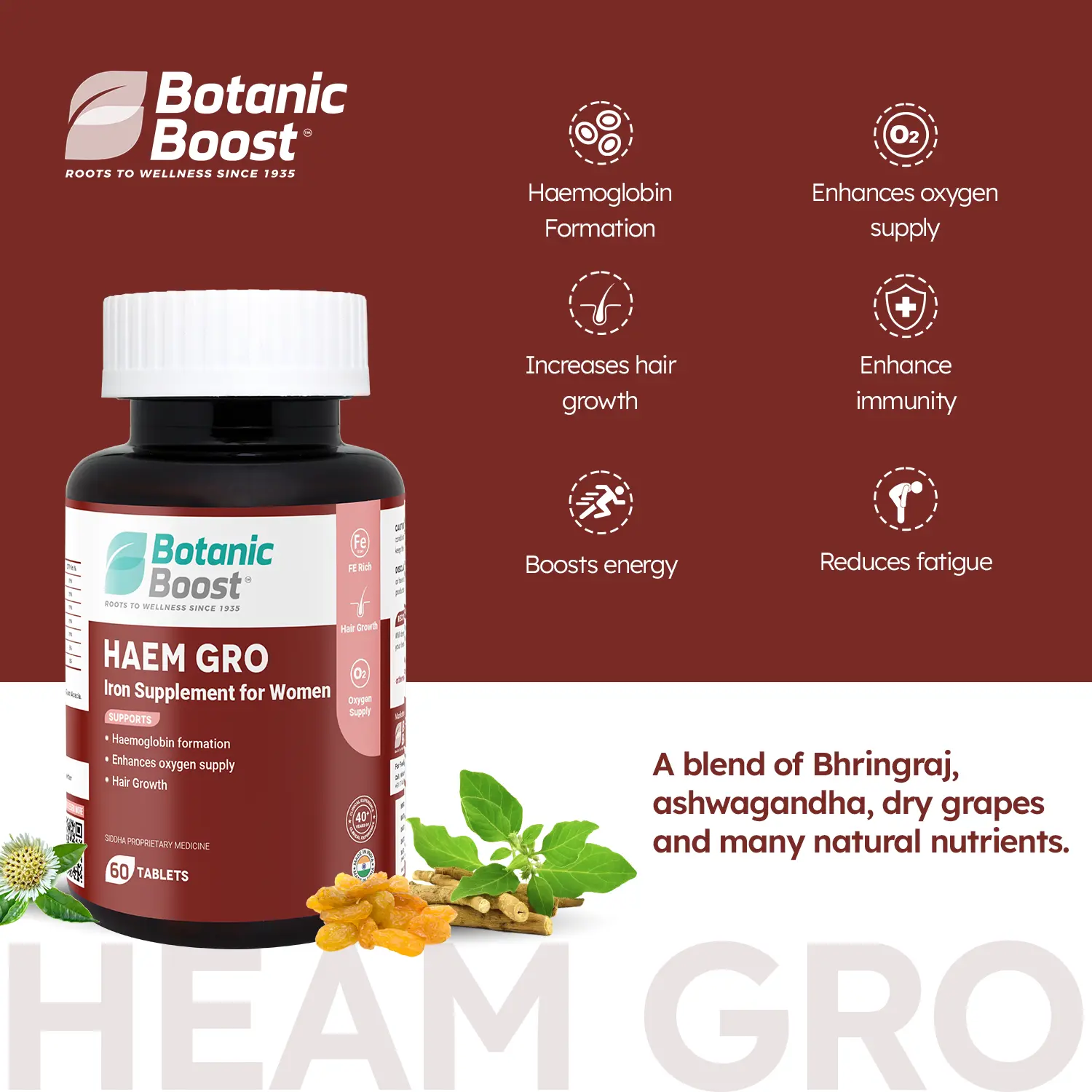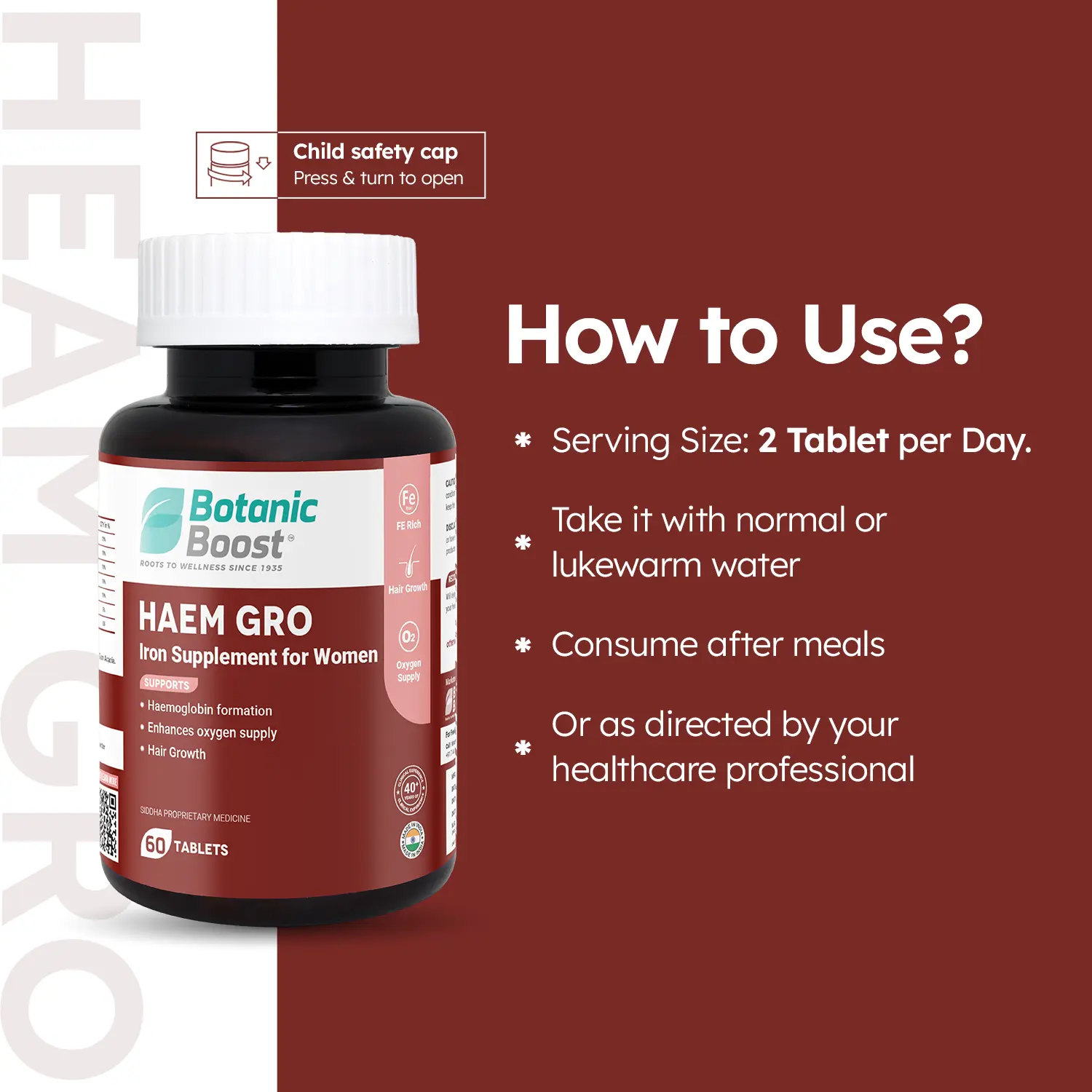 - Iron deficiency is a common cause of hair thinning, Through HAEM GRO one can control hair breakage, thinning and grey hair.